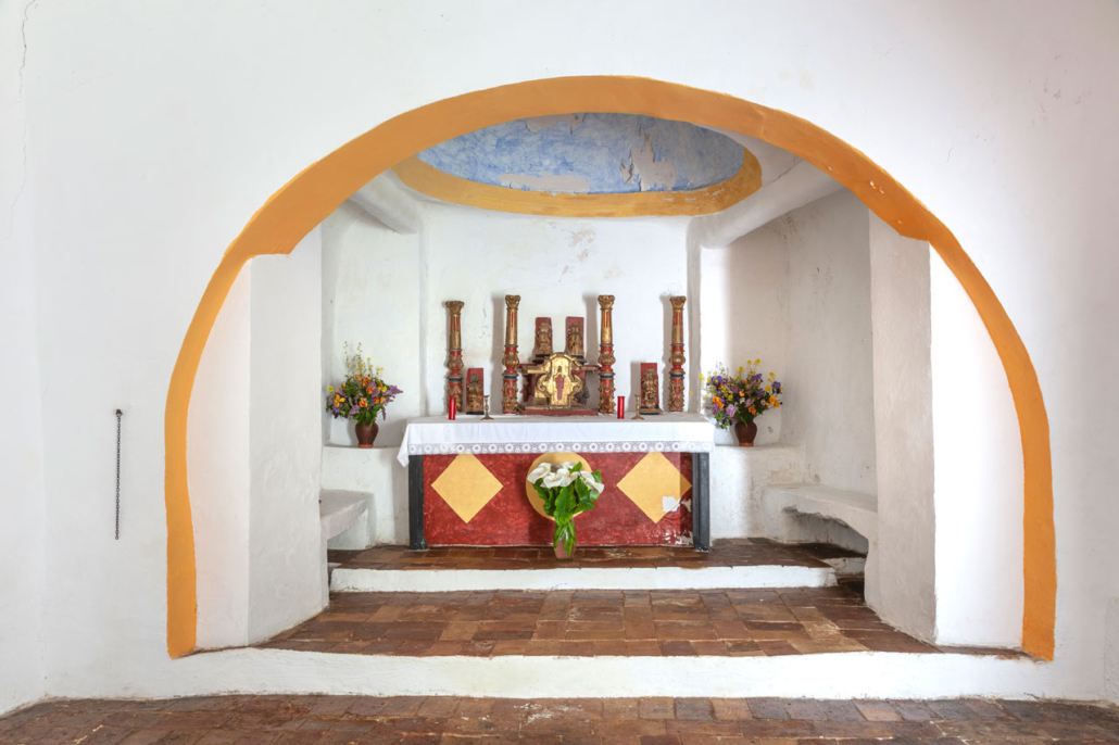 Al lado del Evangelio existía una cadena que los romeros se colocaban en la cabeza porque al parecer, protegía contra los dolores de cabeza durante todo el año.