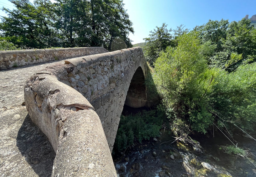 Aunque conocido como puente romano, se trata de un puente medieval reconstruido en el siglo XVI a consecuencia de una gran avenida del río Iregua (por eso, en la N111 se señaliza como Puente Medieval). Servía de unión al Camero Viejo con las zonas del valle, y enlazaba con el Camino de los Arrieros que continúa por Sornazo hacia Sojuela y Nájera.